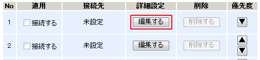 - 「優先度」の三角をクリックすることで、複数登録した接続先の優先順位を入れ替えることができます