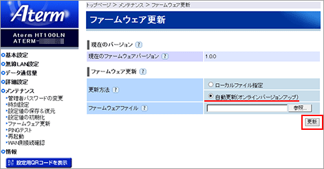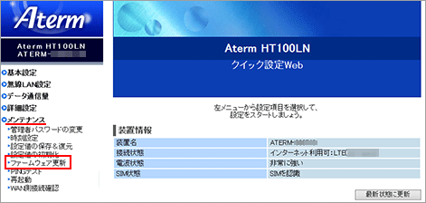 [メンテナンス]-[ファームウェア更新]をクリックします。