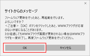 ファームウェアの更新完了後、再起動します。再起動が完了するまでしばらくお待ちください。
