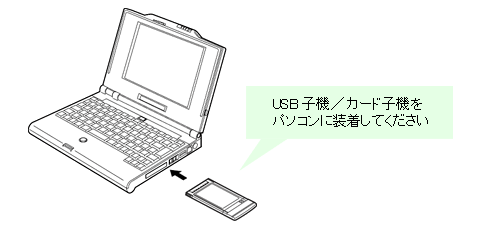 『Aterm WARPSTARユーティリティ』がインストールされたパソコンに、USB・カード子機を接続してください。