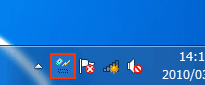 サテライトマネージャのアイコンが隠れている場合は、「△」を押すと表示されます。