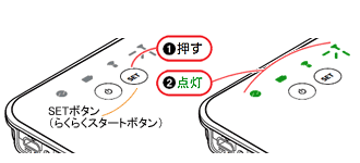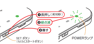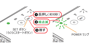 SETボタンを長押し(約10秒)して、POWERランプが緑点滅をはじめたら、SETボタンを放してください。