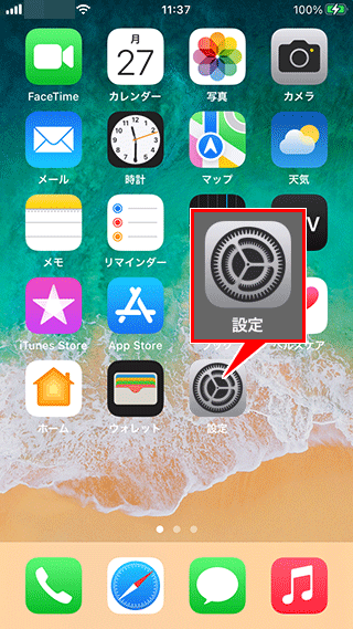 ホーム画面で『設定』をタップ(マウスでいうクリック)してください。