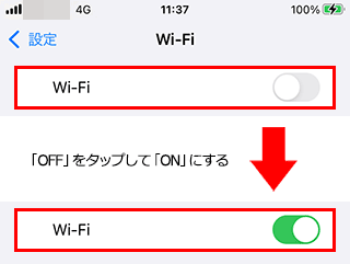 Wi-Fiが「OFF」の場合は、「OFF」をタップして「ON」にしてください。
