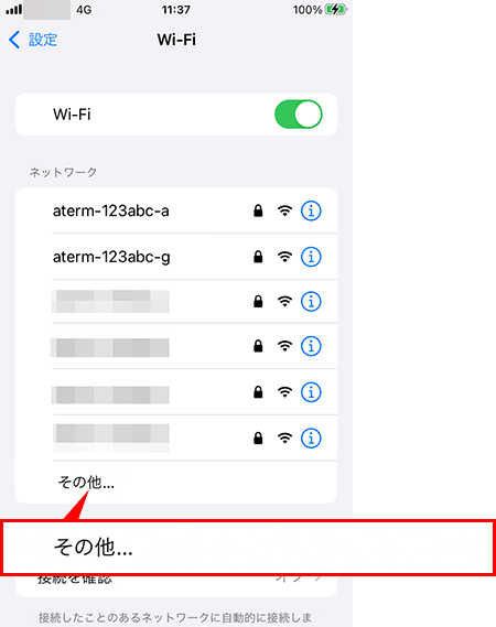 ネットワーク(SSID)一覧が表示されますので、最下部にある「その他...」を選択してください。