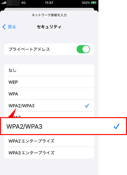 * ご使用の端末やOSによっては、WPA2と表示されている場合があります。