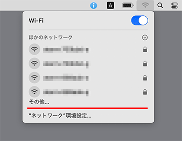 ネットワーク(SSID)一覧が表示されますので、最下部にある「その他...」を選択してください。