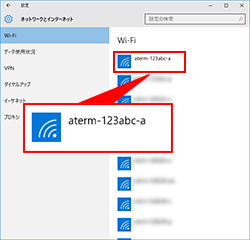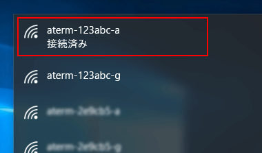 Atermのネットワーク名(SSID)の下には『接続済み』と表示されます。