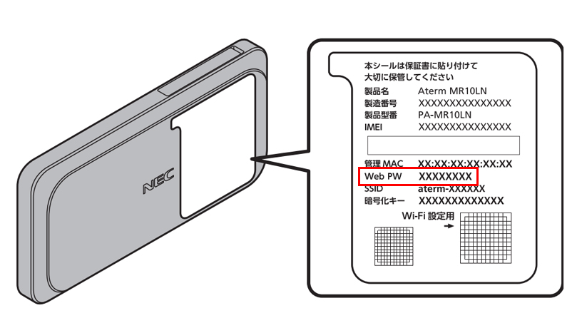 MR10LN の管理者パスワード(Web PW)の記載箇所