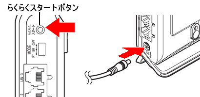 らくらくスタートボタンを押しながら(押したままの状態で)、ACアダプタのプラグを差し込み電源を入れてください。