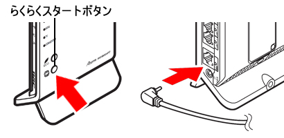 らくらくスタートボタンを押しながら(押したままの状態で)、ACアダプタのプラグを差し込み電源を入れてください。