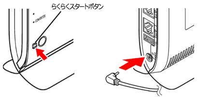 らくらくスタートボタンを押しながら(押したままの状態で)、ACアダプタのプラグを差し込み電源を入れてください。