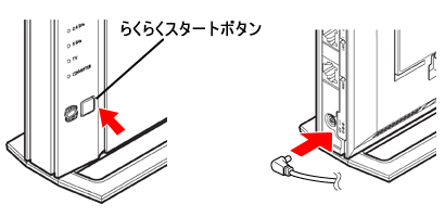 らくらくスタートボタンを押しながら(押したままの状態で)、ACアダプタのプラグを差し込み電源を入れてください。
