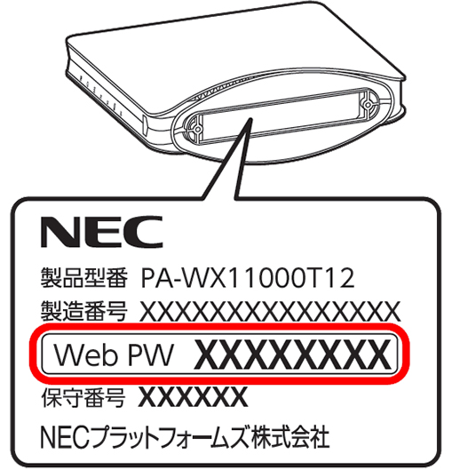 WX11000T12 の管理者パスワード(Web PW)の記載箇所