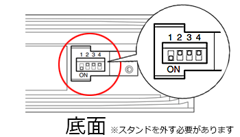 Aterm本体のACアダプタのプラグを外した状態で、本体底面のディップスイッチを「1のみON」の状態に変更してください。