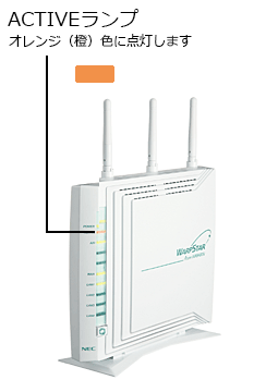 本体の起動が正常に完了し、ACTIVEランプがオレンジ点灯になればアクセスポイントモード[ブリッジモード]への切り替えは完了です。