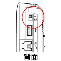 Aterm本体のACアダプタのプラグを外した状態で、本体背面のモード切替スイッチを「AP」(WG300HPの場合は「BR」)に変更してください。