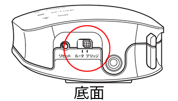 Aterm本体のACアダプタのプラグを外した状態で、本体底面のモード切替スイッチを「ブリッジ」に変更してください。