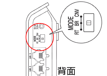 Aterm本体のACアダプタのプラグを外した状態で、本体背面のモード切替スイッチを「BR」に変更してください。