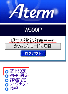 ※ W500Pは「かんたんモード」では、『基本設定』が表示されませんので「詳細モード」に切り替えます。