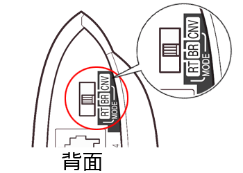 Aterm本体のACアダプタのプラグを外した状態で、本体背面のモード切替スイッチを「BR」に変更してください。