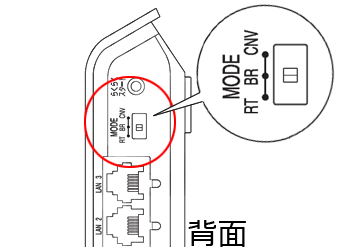 Aterm本体のACアダプタのプラグを外した状態で、本体背面のモード切替スイッチを「BR」に変更してください。