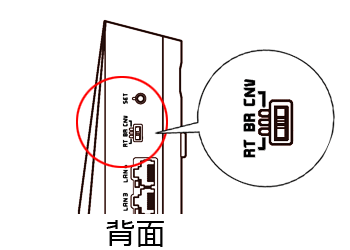 Aterm本体のACアダプタのプラグを外した状態で、本体背面のモード切替スイッチを「BR」に変更してください。