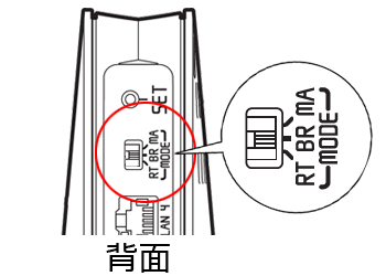 Aterm本体のACアダプタのプラグを外した状態で、本体背面のモード切替スイッチを「BR」に変更してください。
