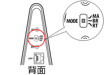 Aterm本体のACアダプタのプラグを外した状態で、本体背面のモード切替スイッチを「BR」に変更してください。