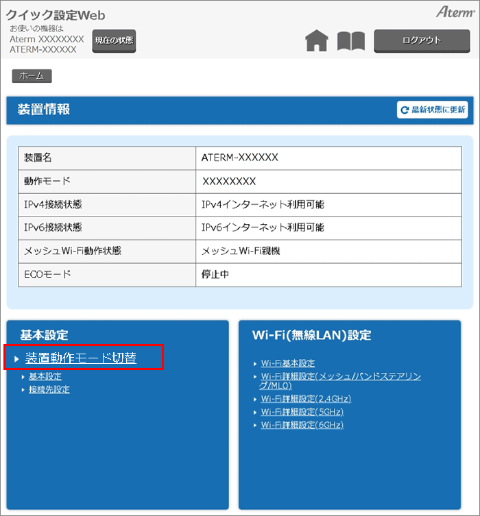 クイック設定Webの起動手順をご参照の上、クイック設定Webを開いてください。
