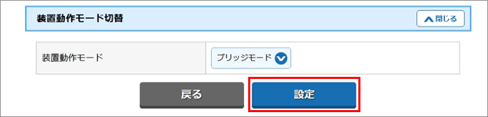 「装置動作モード切替」で「ブリッジモード」を選択してください。
