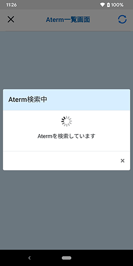 「Atermを検索しています」と表示されますので、しばらくお待ちください。