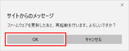 『最新のファームウェアが適用されていますので、更新の必要はありません。』と表示された場合は、最新のファームウェアを適用済みですので、更新は必要ありません。