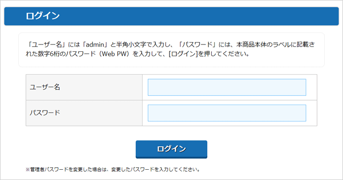 ファームウェアの更新・再起動が完了すると、ログイン画面に戻ります。