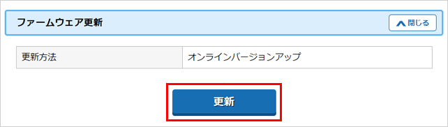 ファームウェアの更新は、クイック設定Webを開いてオンラインバージョンアップで更新します。