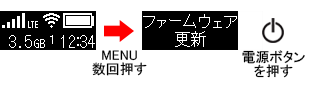 ホーム画面で、本体のMENUボタンを数回押すと「ファームウェア更新」と表示されますので、電源ボタンを押してください。