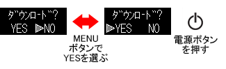 「ダウンロード?」と表示されますので、本体のMENUボタンを押して「YES」側を選んで、電源ボタンを押してください。