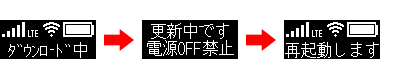 ディスプレイに「ダウンロード中」〜「更新中です 電源OFF禁止」〜「再起動します」など表示されますので、電源を切らずそのままお待ちください。