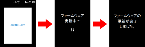 しばらくすると「再起動します」と表示され、そのあとファームウェアの更新が開始されます。