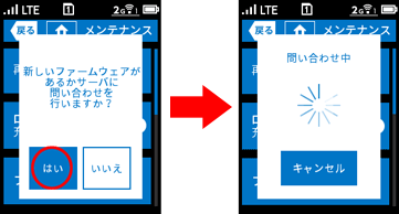 「新しいファームウェアがあるかサーバに問い合わせを行いますか?」と表示されるので、「はい」をタップしてください。