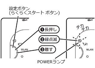 POWERランプが緑点滅を始めてから、1分以内に細い棒状(※)のものでRESETスイッチを約1秒押して放してください。