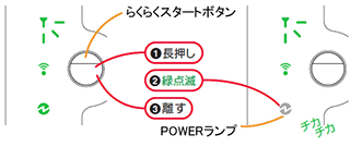 RESETスイッチを長押ししてしまった場合、POWERランプが赤点滅になり初期化準備状態になります。
