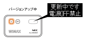 POWERランプがオレンジ色に点灯し、ディスプレイに「更新中です 電源OFF禁止」と表示されます。