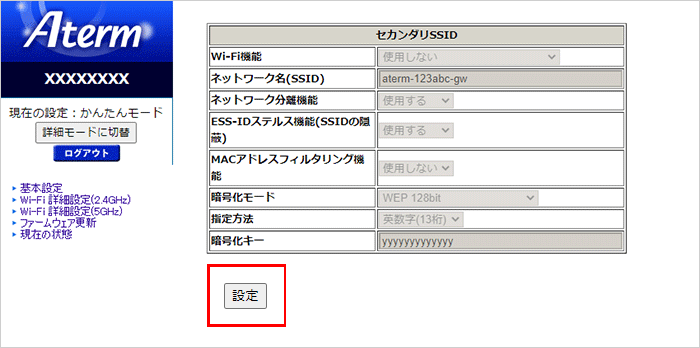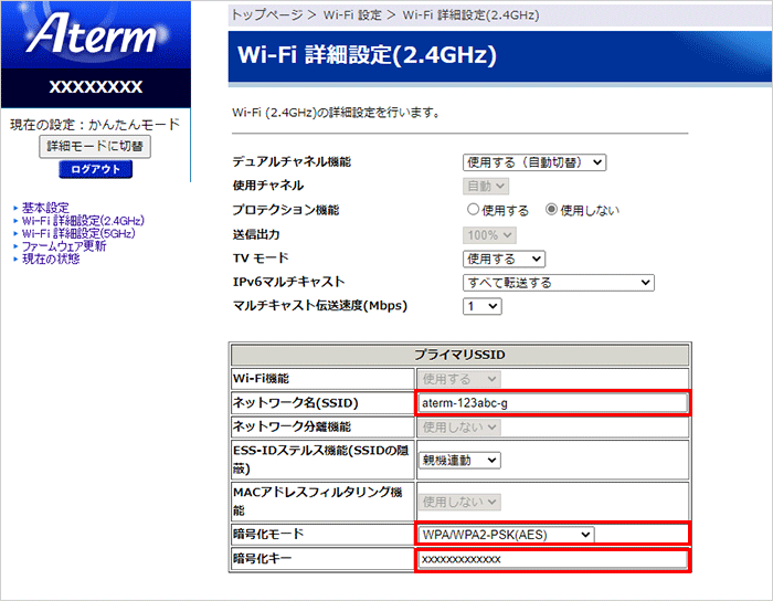 (詳細モードの場合は、『Wi-Fi設定』-『Wi-Fi詳細設定(2.4GHz)』を選択します。)