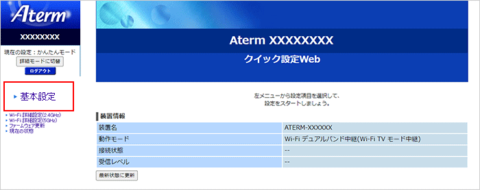 クイック設定Webのトップページから、『基本設定』を選択してください。