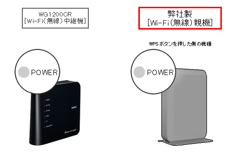 WG1200CRのPOWERランプ点滅後、1分以内に弊社製Wi-Fi(無線)親機の「WPSボタン」を長押ししてください。