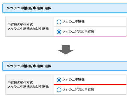 なお、メッシュ機能を使用した中継機にして設定を行いたい場合は、こちらをご覧ください。