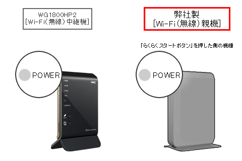 WG1800HP2のPOWERランプ点滅後、1分以内に弊社製Wi-Fi(無線)親機の「らくらくスタートボタン」を長押ししてください。