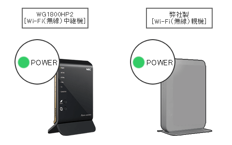 WG1800HP2と弊社製Wi-Fi(無線)親機のPOWERランプが、オレンジ点灯に変わりましたら、ボタンから手を放してください。(オレンジ点灯になるまでは、接続する親機により異なり数秒〜数分かかります。)