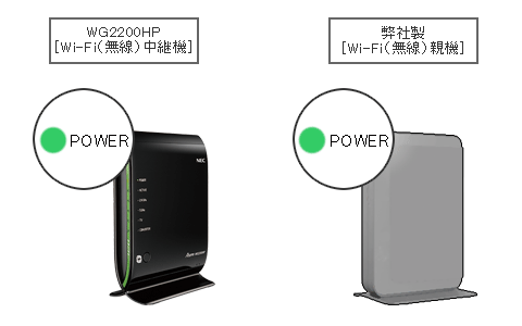 WG2200HPのPOWERランプ点滅後、1分以内に弊社製Wi-Fi(無線)親機の「らくらくスタートボタン」を長押ししてください。